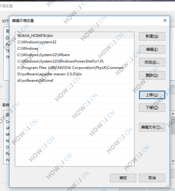 注意:是下面的系统变量,不是上面的用户变量 新建变量名 JAVA_HOME,变量值 E:\JDK 修改变量 Path ,在最前面加上 %JAVA_HOME%\bin; 注意:"Path"是首字母大写,不要改成"PATH" bin后面要有分号; 注意:系统变量上面的用户变量里,不要有这两个,如果有应该去掉,以避免被干扰。 注意:Win10 下PATH的配置有所不同,按照下个步骤配置即可:Win10 下环境变量Path的配置