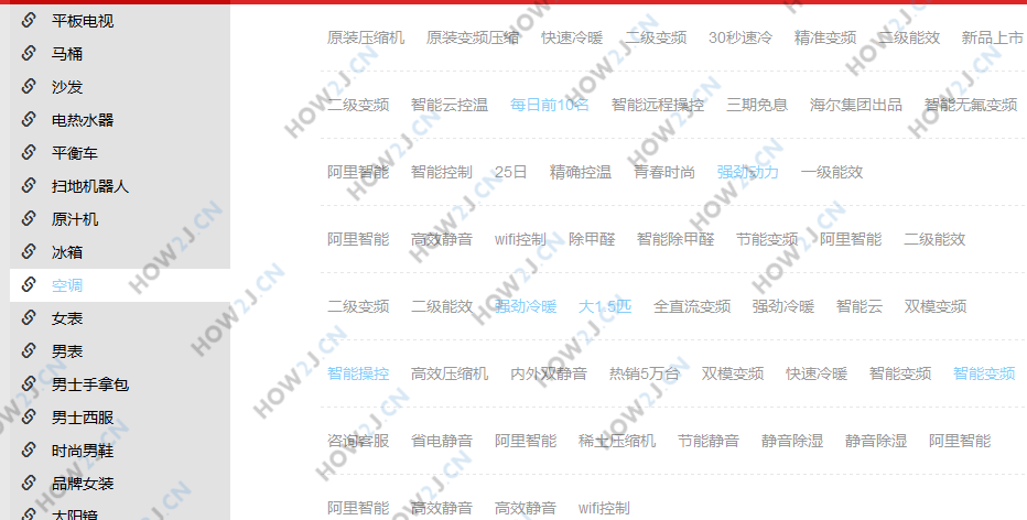 即一个分类又对应多个 List<Product>,提供这个属性,是为了在首页竖状导航的分类名称右边显示产品列表。 如截图所示,一个分类会对应多行产品,而一行产品里又有多个产品记录。 为了实现界面上的这个功能,为Category类设计了 List<List<Product>> productsByRow 这样一个集合属性