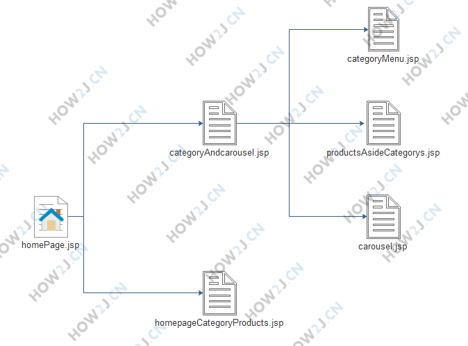 步骤 2 : homePage.jsp 所包含页面关系 步骤 3 : categoryAndcarousel.jsp 步骤 4 : categoryMenu.jsp 步骤 5 : productsAsideCategorys.jsp 步骤 6 : carousel.jsp 步骤 7 : homepageCategoryProducts.jsp 步骤 8 : 总结
